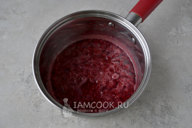 Проварите малину при слабом кипении 8-10 минут, чтобы ягоды максимально отдали сок.
