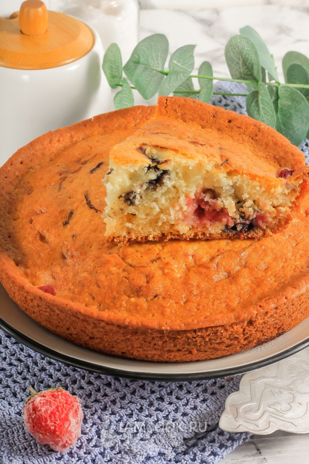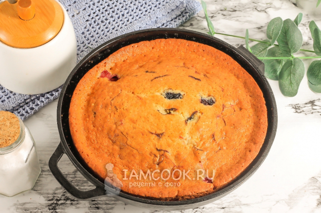 Поместите форму в духовку и выпекайте бисквитный пирог с ягодами в течение 30-35 минут на среднем ярусе. Обязательно следите за низом и верхом пирога, чтобы он не подгорел. Проверяйте на готовность выпечку с помощью деревянной шпажки - она должна выходить сухой из середины пирога. Как только он испечется, выключите нагрев и оставьте пирог в духовке, чтобы он остыл. Так как он может осесть из-за разницы температур.