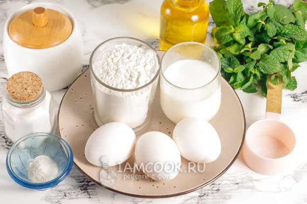 Продукты для приготовления пышного бисквитного пирога на кефире в духовке - перед вами!