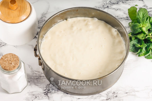 Смажьте форму растительным маслом и перелейте в нее приготовленное тесто. Поместите форму в духовку на 30-35 минут, на средний ярус.