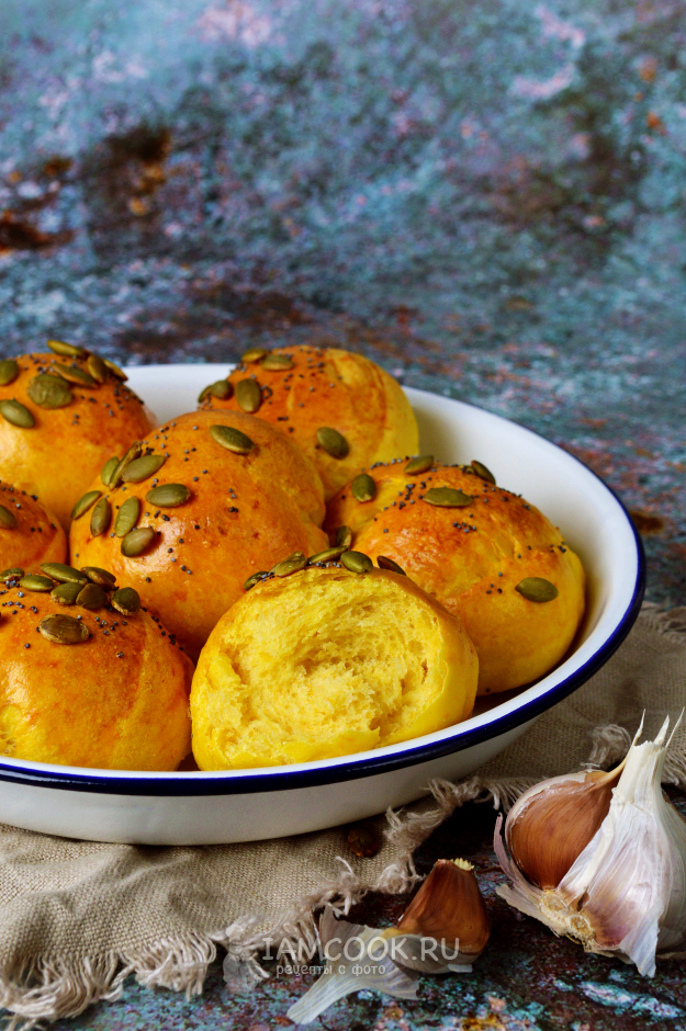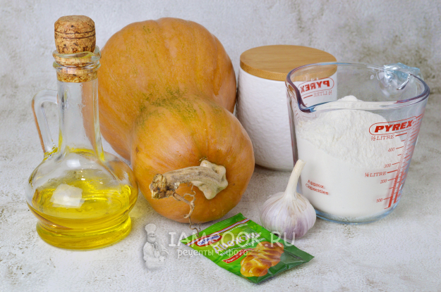 Соберите необходимые ингредиенты для приготовления тыквенных булочек с чесноком.