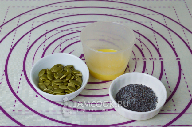 Подготовить семена для посыпки, смешать яйцо с молоком для смазывания булочек.
