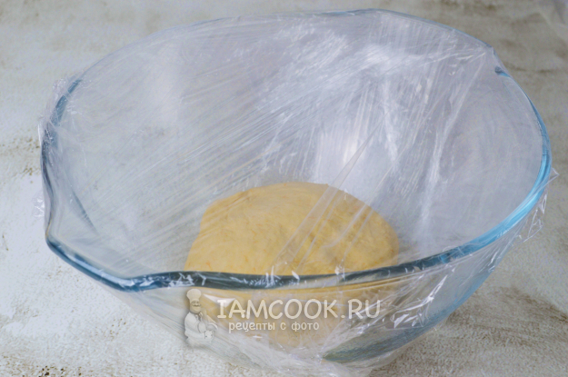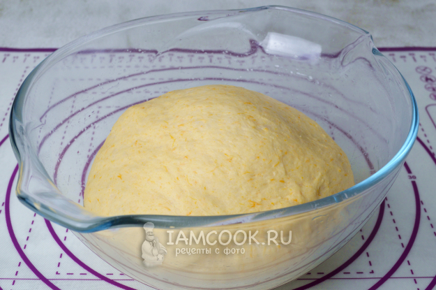 Подошедшее тесто обмять и выложить на рабочую поверхность.