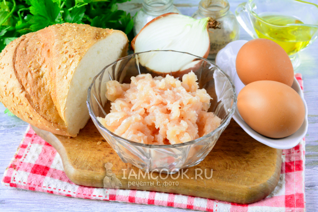Перед вами все необходимые ингредиенты для приготовления гренок с фаршем на сковороде.