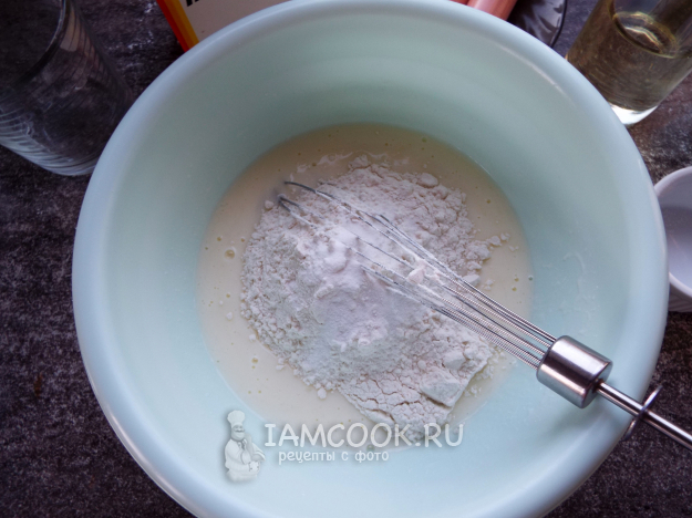 Добавить муку и соду.