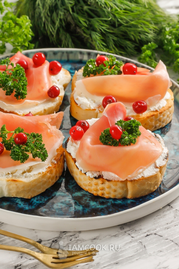 Подайте брускетту с беконом и творожным сыром к столу вместе с напитками. Не забудьте созвать всех родных и друзей.