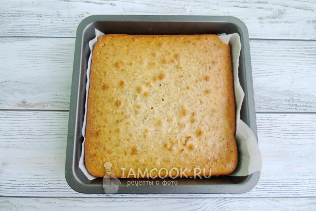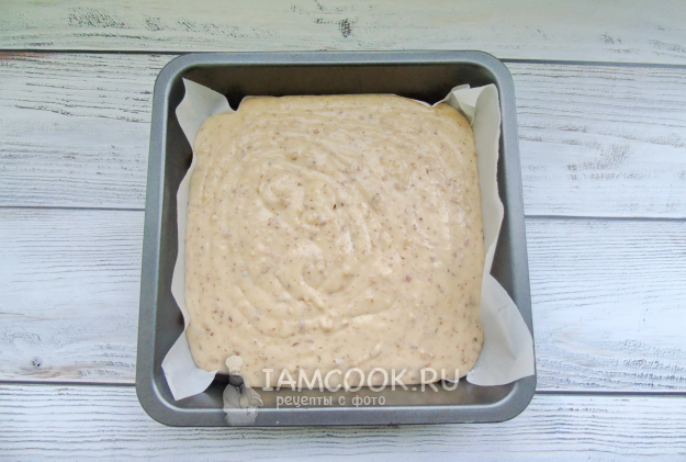 Выложите тесто в форму для выпечки с пергаментом. Размеры моей формы - 20х20 см.