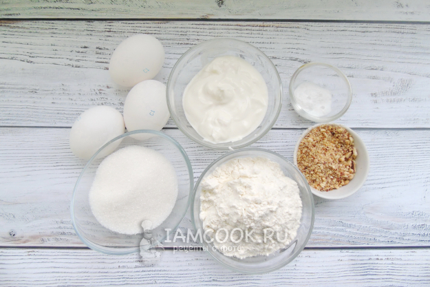 Все ингредиенты для приготовления пирога на сметане с молотым миндалём - перед вами на фото.