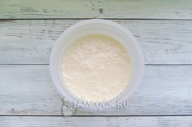 Миксером взбейте яйца с сахаром, пока масса не увеличится в объеме и не побелеет.