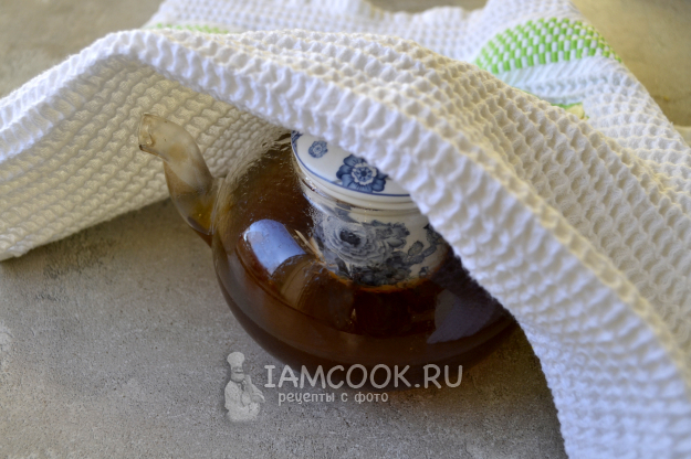 Накройте заварочный чайник полотенцем и оставьте для настаивания на 5-10 минут.