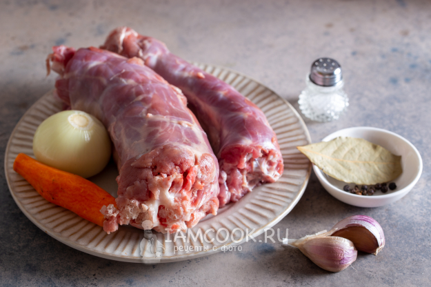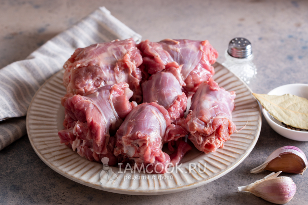 Подготовьте указанные ингредиенты для холодца из шеи индейки.
