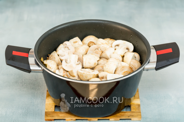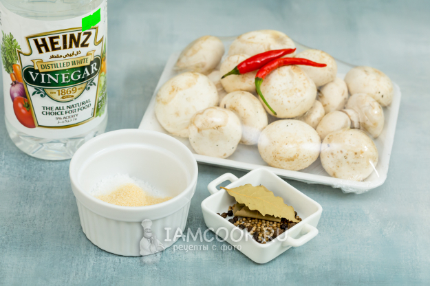 Для приготовления маринованных шампиньонов с острым перцем и чесноком подготовьте продукты по списку.