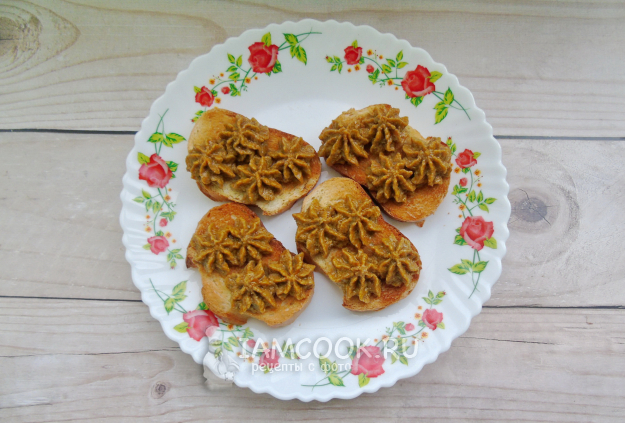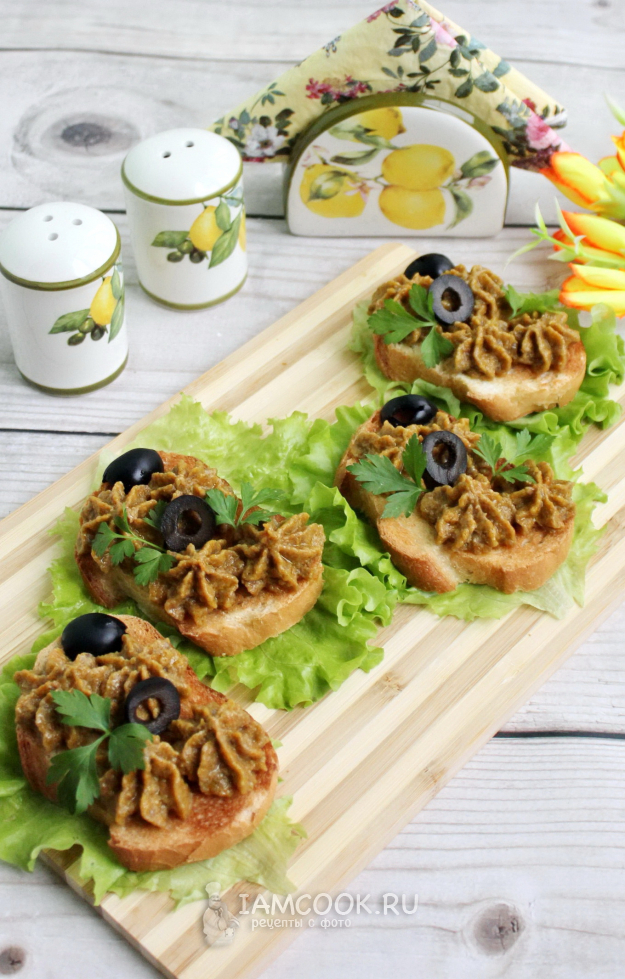 Брускетты с грибной икрой готовы. Подавайте к столу.
