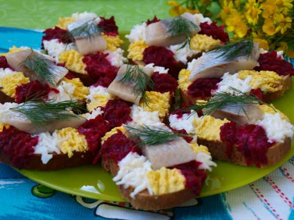 Замечательная брускетта с сельдью и свеклой на черном хлебе готова.