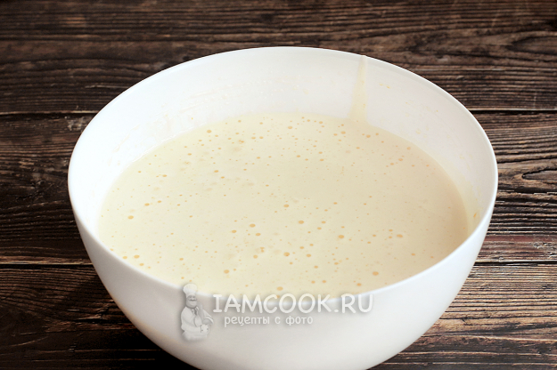 Смешивайте тесто венчиком или лопаткой. Ни в коем случае процесс не затягивайте, чтобы тесто не опустилось.