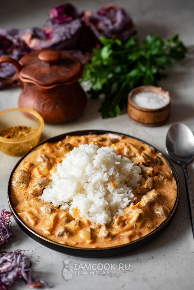 На порционную тарелку выкладываем сначала отваренный рис, а затем выкладываем гуляш. Подаем гуляш из говядины с рисом и подливкой к столу. Приятного аппетита!