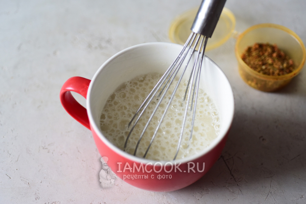 Затем в воде хорошенько размешаем муку, полностью избавляясь от возможных комочков.