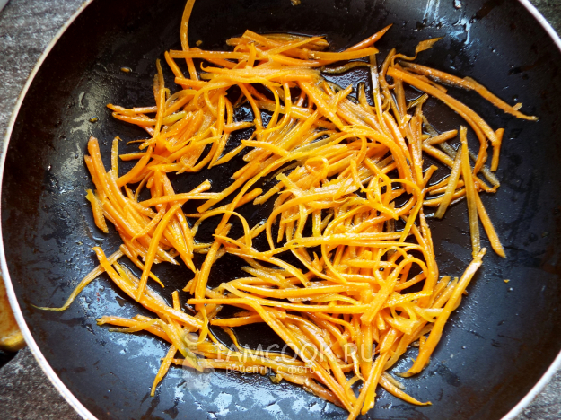 Быстро обжарить морковь на масле.