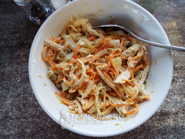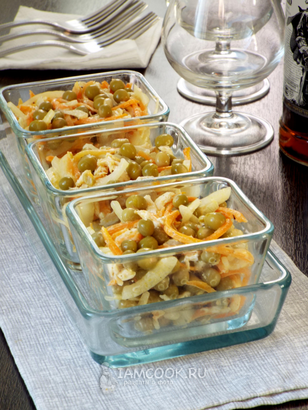 Питательный салат «Купеческий» с курицей готов.