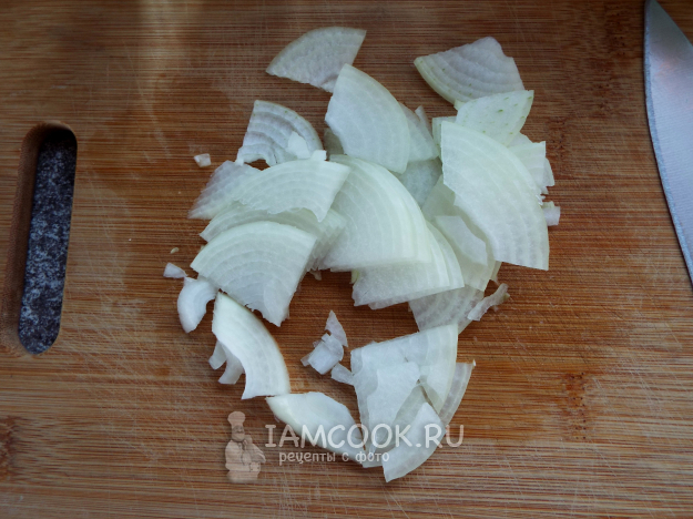 Лук нарезать четверть-кольцами.