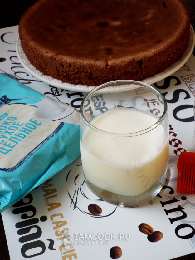 Для шоколадного бисквита я хочу предложить пропитку на сухом молоке. Она более густая и ароматная, чем на обычном молоке. И такой вариант выручит, когда нет в холодильнике молочки.
