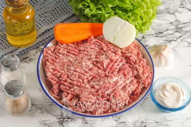 Продукты для приготовления сочных тефтелей с майонезом на сковороде - перед вами!