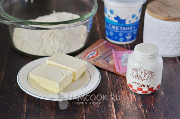 Подготовьте ингредиенты для Цветаевского пирога с творогом и яблоками. На фото - всё, что вам потребуется для теста. Масло должно быть холодным.