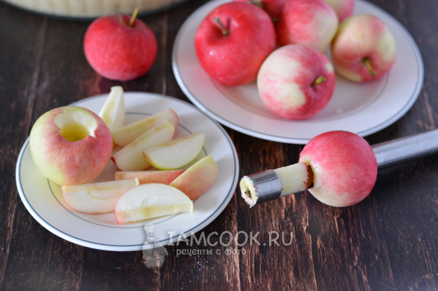 А тем временем у яблок удалите сердцевину и нарежьте дольками.