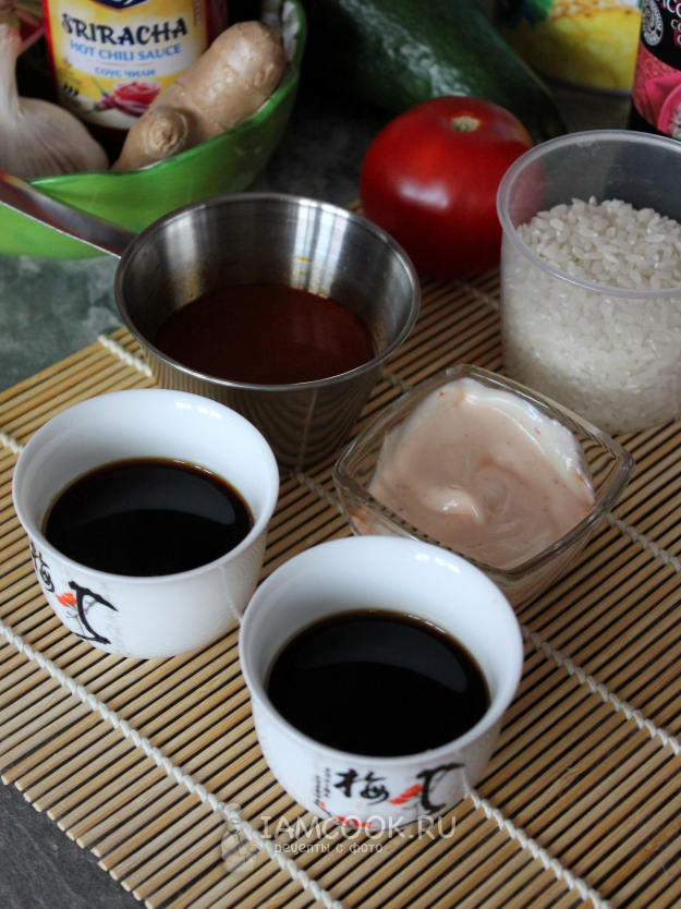 Соусы приготовьте до варки риса и подготовки других ингредиентов для поке.