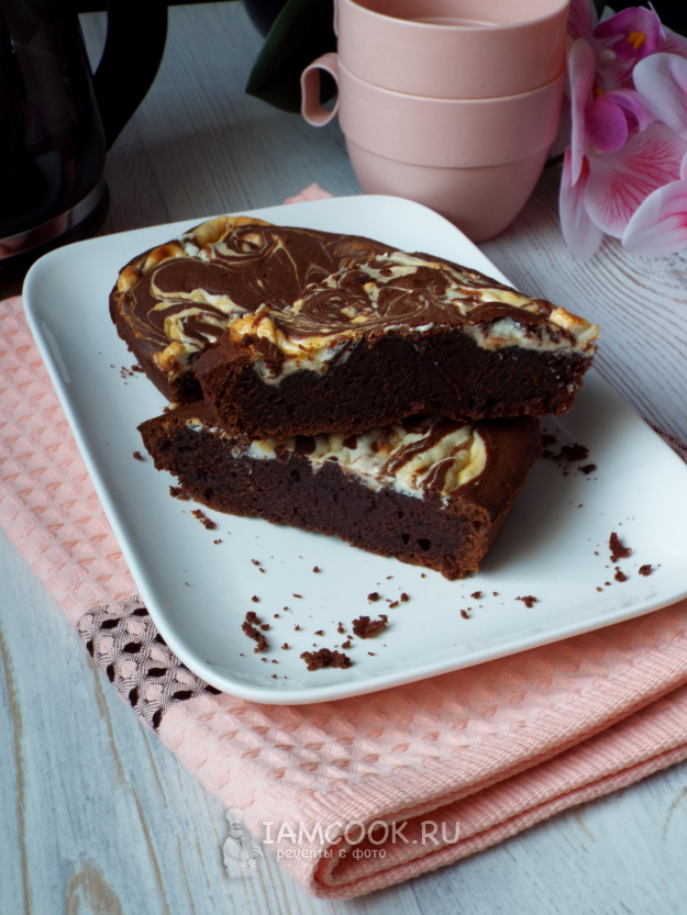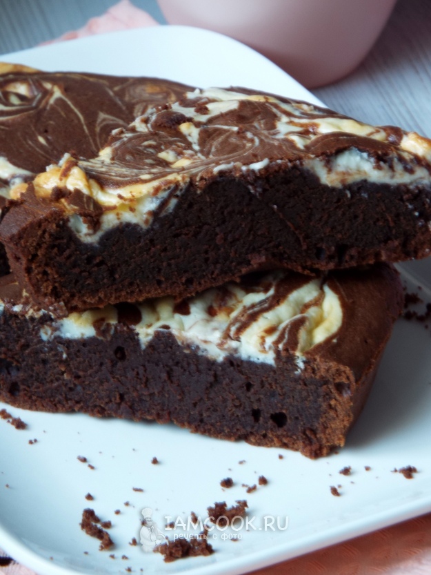 Мега шоколадный нежный брауни с творожным сыром готов.