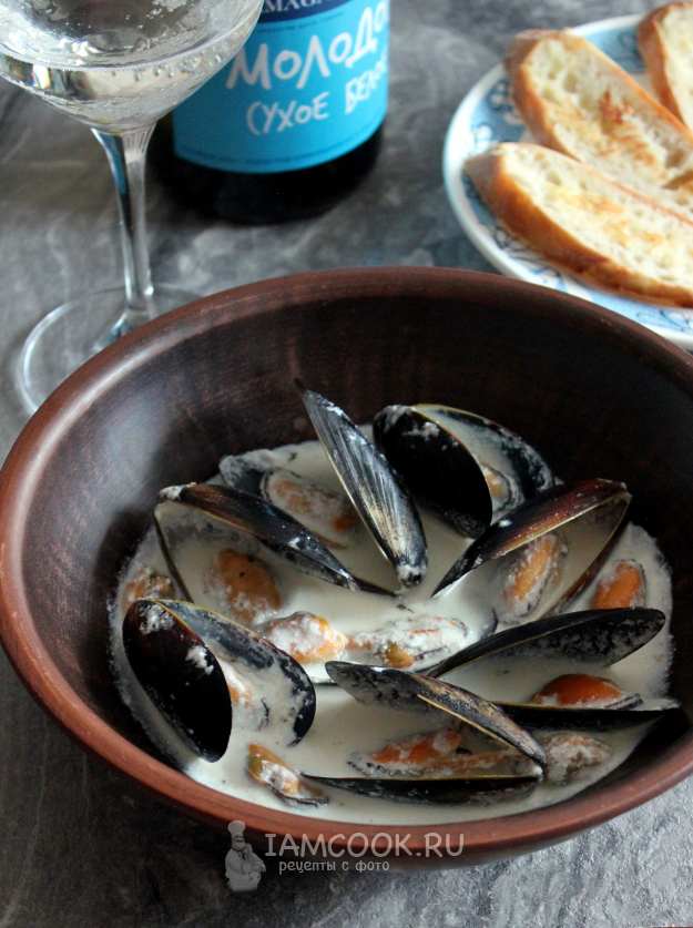 Мидии в соусе «Блю чиз» гармонично сочетаются с белым сухим вином, но, конечно же, они могут быть и самостоятельной закуской.