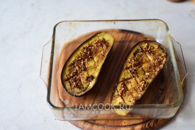 Отправим баклажаны в форме запекаться в духовку при температуре 200 градусов до мягкости (примерно 20 минут).