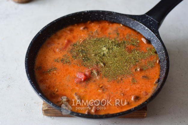 Обязательно пробуем на вкус и самостоятельно корректируем количество специй, после чего снимаем с плиты сковороду.