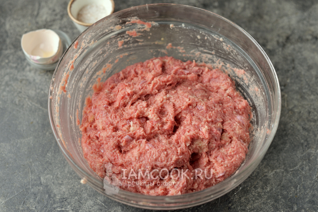 Фарш тщательно вымесите, слегка отбейте, отставьте в сторону минут на 20.