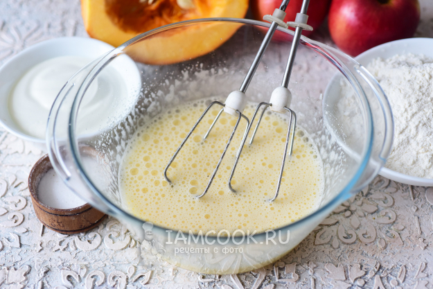 Миксером будем взбивать эти ингредиенты до получения пышной пены.