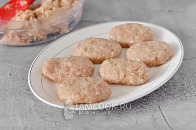 Мокрыми руками сформируйте котлеты. Размер определяйте сами, кто-то любит большие, кто-то - миниатюрные. Форма котлет, опять же, на свой вкус - я сделала овальные. Эти котлеты я не панирую.