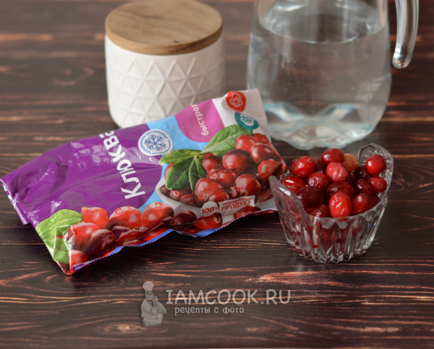 Клюква, вода и сахар - вот и всё, что понадобится для приготовления морса без варки. Замороженную клюкву надо полностью разморозить. Воду берите питьевую бутилированную или фильтрованную комнатной температуры.