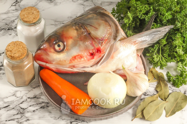 Продукты для приготовления заливного из головы толстолобика без желатина - перед вами!