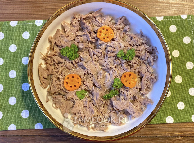 На стол заливное из шеи индейки с желатином подают с горчицей или хреном.