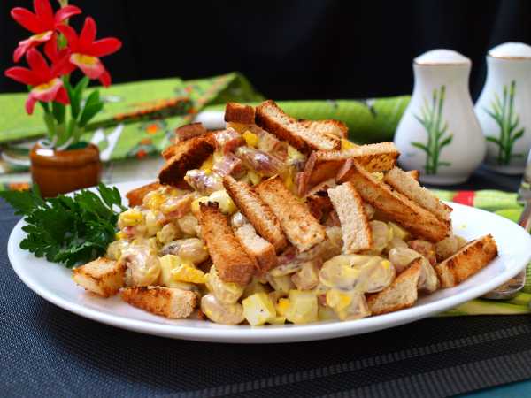 Добавляем фасоль к жареному луку (или жареному луку с овощами, если используются), солим, приправляем, тушим вместе, пока фасоль не прогреется.