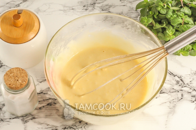 Венчиком взбейте всю массу примерно 3-4 минуты. Время от времени отдыхайте и снова взбивайте. Очень важно наполнить массу пузырьками воздуха, чтобы она хоть немного стала воздушной. Поверьте, после 4-5 минут взбивания масса больше вырастать в объеме не будет - не утруждайте себя.