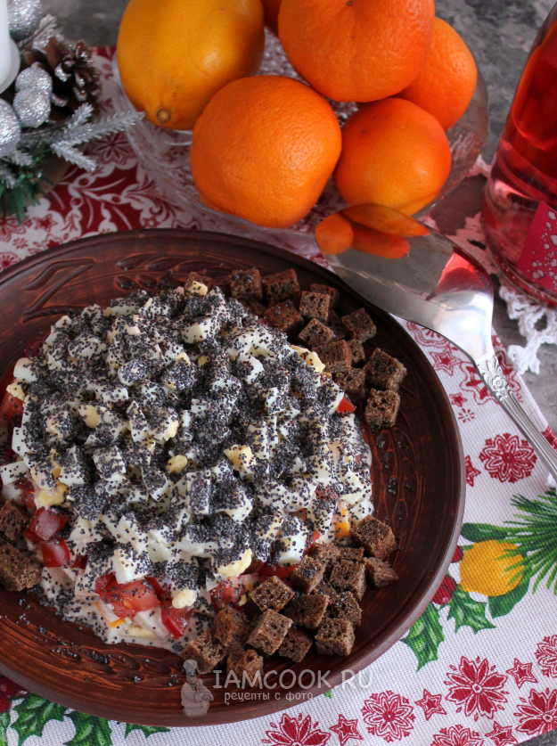 Салату нужно дать хотя бы час пропитаться, держите его в холодильнике.