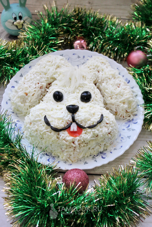 Вегетарианский салат «Кролик» на Новый год 2023 готов. Успех за праздничным столом вам обеспечен.