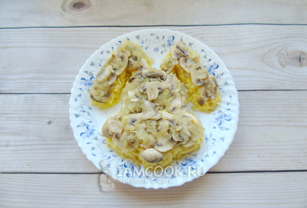И последний слой - сыр моцарелла, который также натрите на терке.
