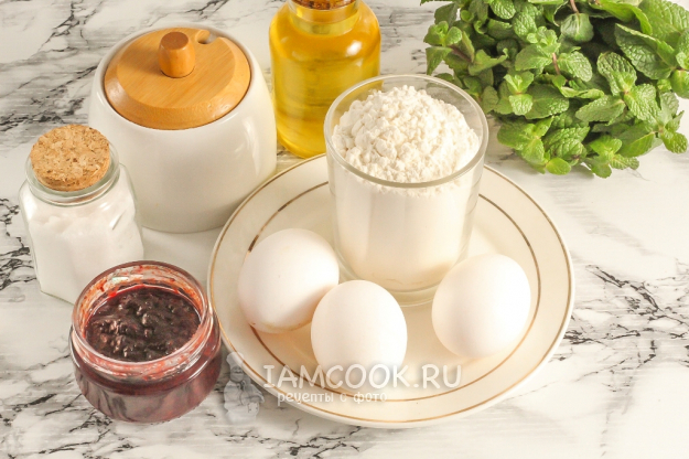 Продукты для приготовления бисквитного пирога с вареньем в духовке - перед вами!