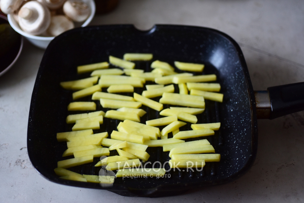 Картофель нарежем брусочками и обжарим в растительном масле на сковороде до золотистой корочки. Я дополнительно не солила.