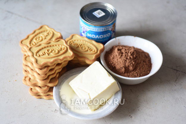 Соберём необходимые ингредиенты для приготовления пирожного «Картошка» в виде елочки.
