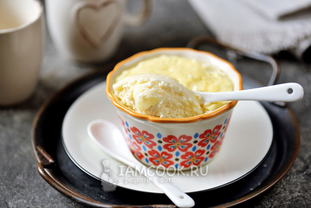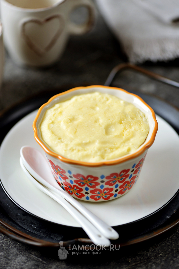 Чуть смажьте формочки растительным маслом, разложите массу по креманкам-пиалкам, пригодным для использования в микроволновке. Я накрывала их крышками. Если у вас крышечек нет, тогда кладите творожную массу до половины посуды, поскольку в микроволновой печи она будет сильно подниматься во время приготовления.