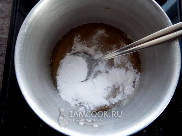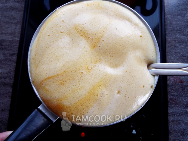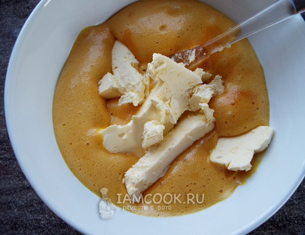 Когда масса станет красивого карамельного цвета, добавить мягкое масло и перемешать до однородности.