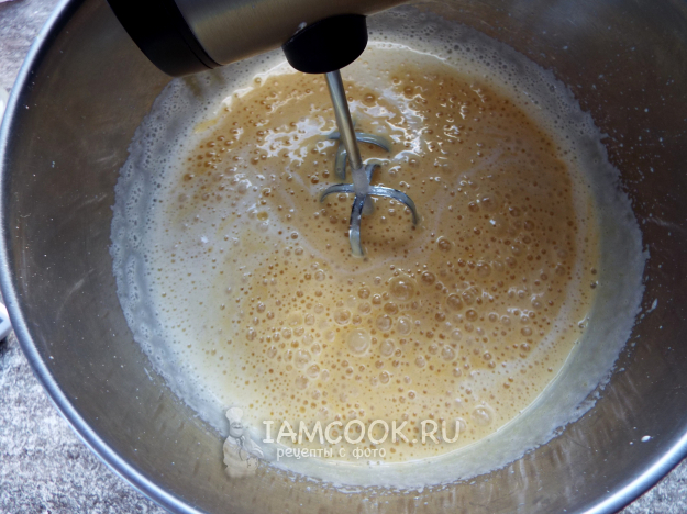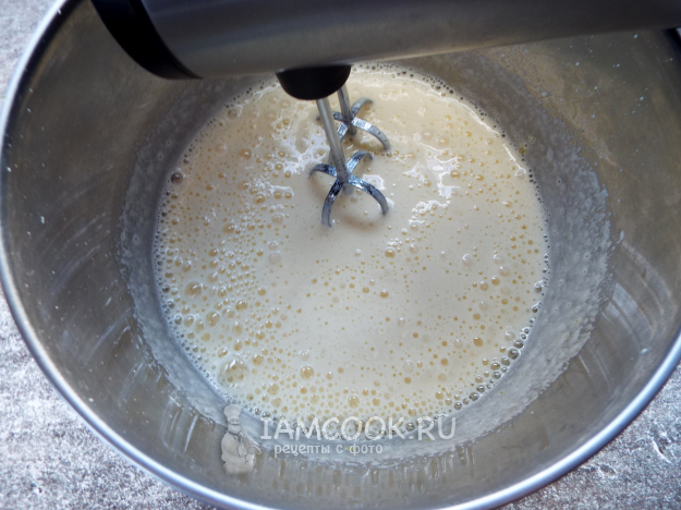 Мешать. Сразу будет реакция, масса начнёт пениться.